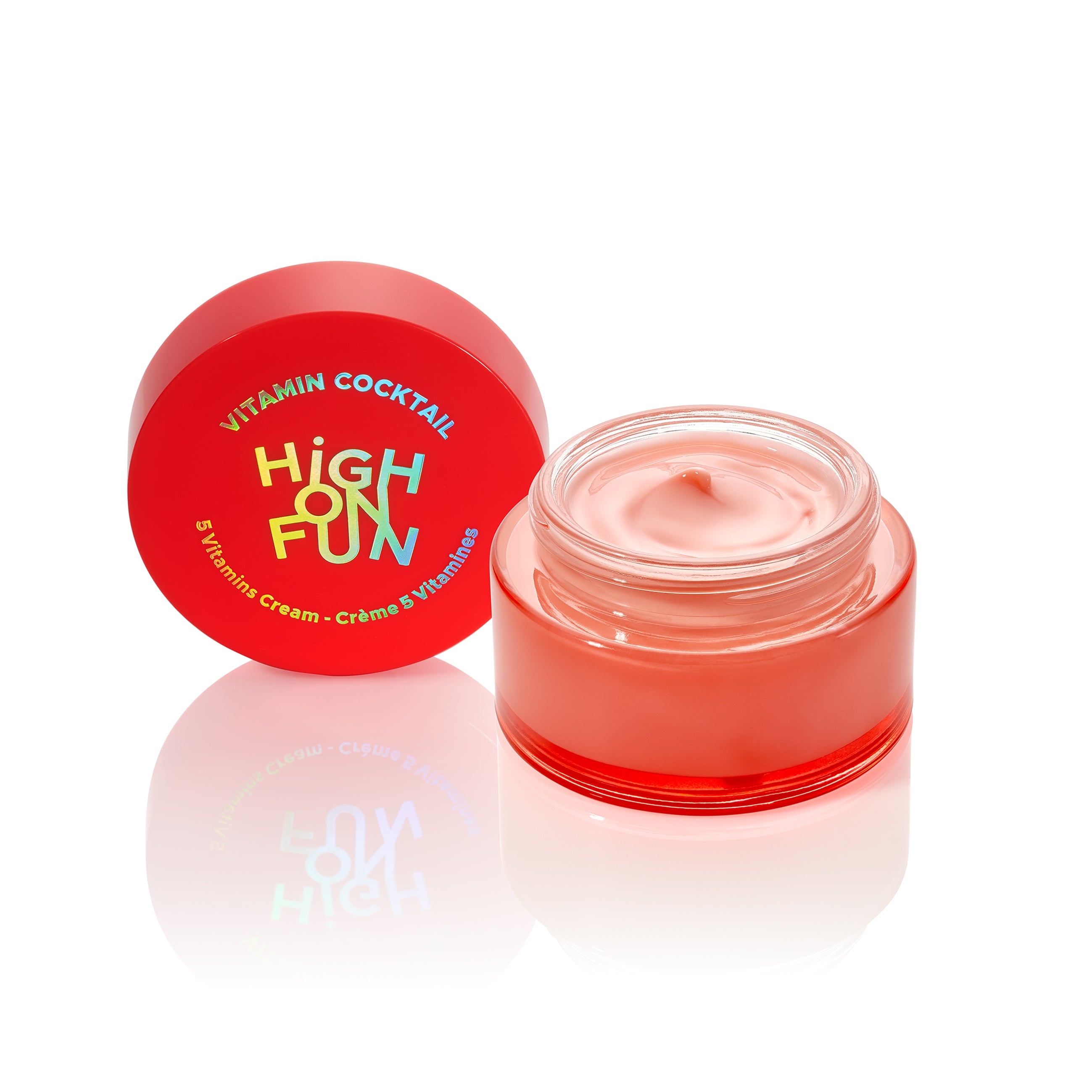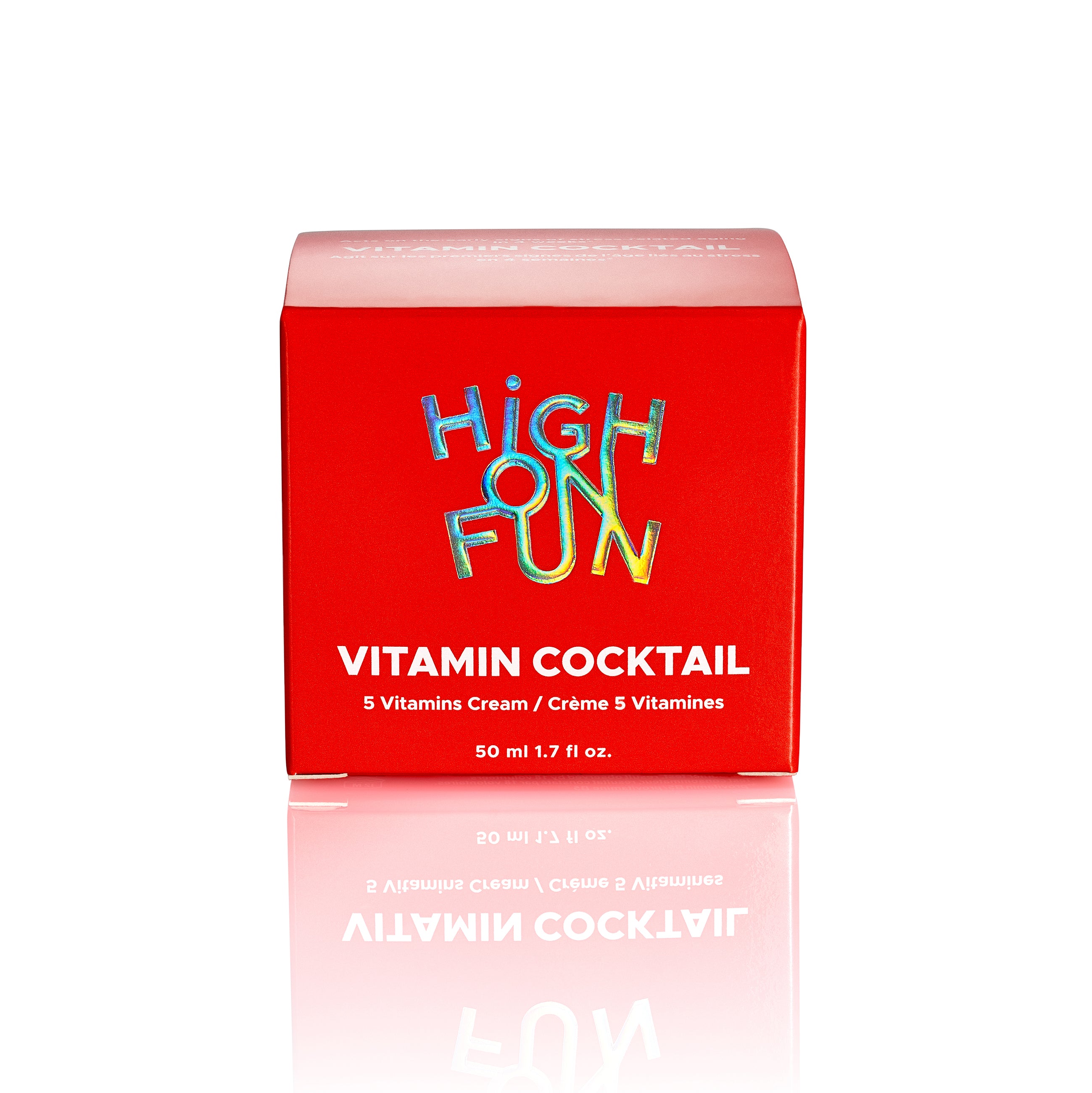 Pour un rituel complet : commencer par votre nettoyant High on Fun préféré, poursuivre avec les sérums visage et terminer par Vitamin Cocktail en dernière étape.
